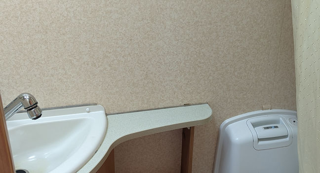 The caravan features a fully equipped kitchen with gas hob, grill, oven, sink and fridge, making self-catering easy and convenient. It also includes a bathroom with shower, toilet and wash basin.